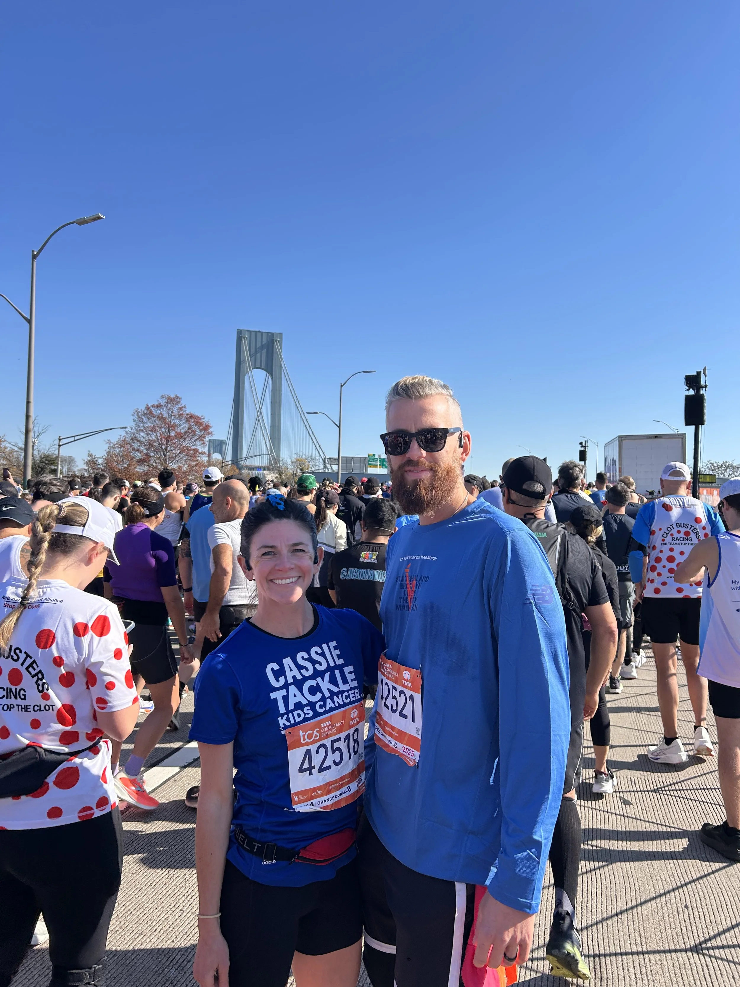 “New York Marathon round two is in the books! Shaun and I were so happy to give back to our community by raising $10,000 this year for Tackle Kids Cancer. Thank you to everyone that donated and cheered us on. Here’s to next year!”